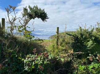 You would think after a couple of days we would have learned and adjusted for the “loose” interpretation of distance. We did not! We set out each day with enough water, but minimal amounts of food. Not once did we pack a lunch! We kept thinking, “Surely we will come across a café or a restaurant.” Yet each day nothing but rolling green—oh so green—hills filled with wildflowers, wooden fences with rusty wires covered in blackberries, blue sky with fluffy gray clouds gathering and parting, gathering and parting, and of course, the sheep and the cows, the sheep and the cows, always the sheep and the cows. Over the 10 days of hiking, I think we only found a place for lunch twice. There were days when we must have looked hungry because the cows seemed to be giving us warning looks to keep away from their cud!
